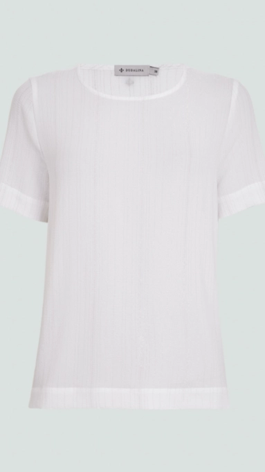 Blusa reta com leve ajuste ao corpo, conferindo um visual sofisticado e confortável.
