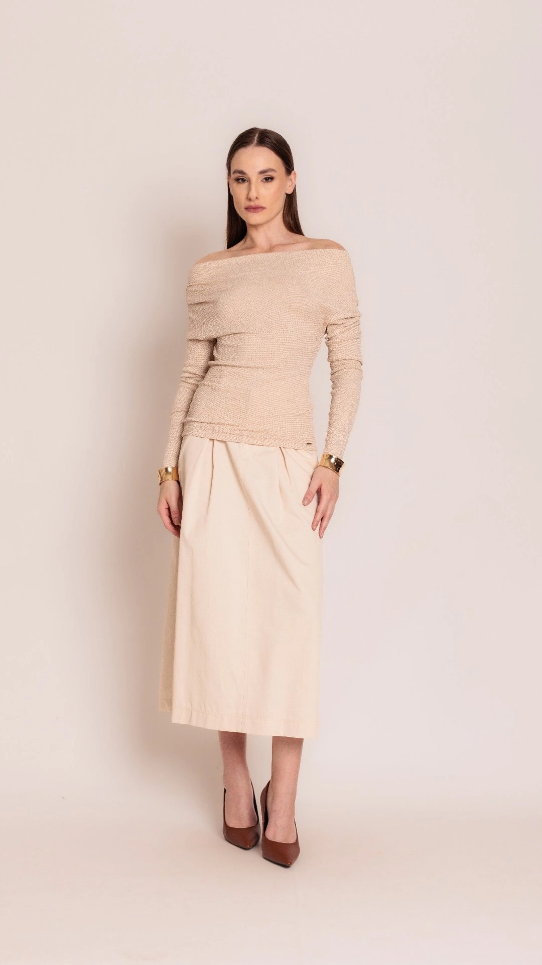 Malha leve e confortável com fios de lurex proporcionando brillho e elegância. Composição: 81% Viscose 8% Poliéster 7,5% Poliamida 3,5% Elastano