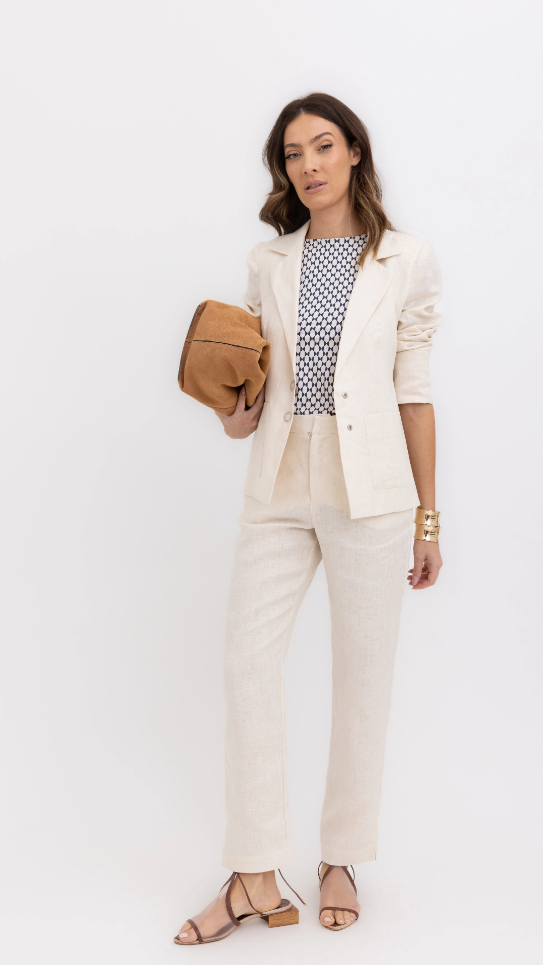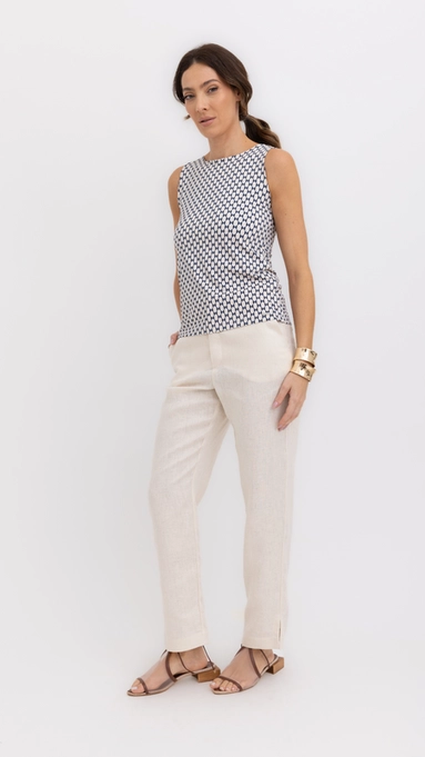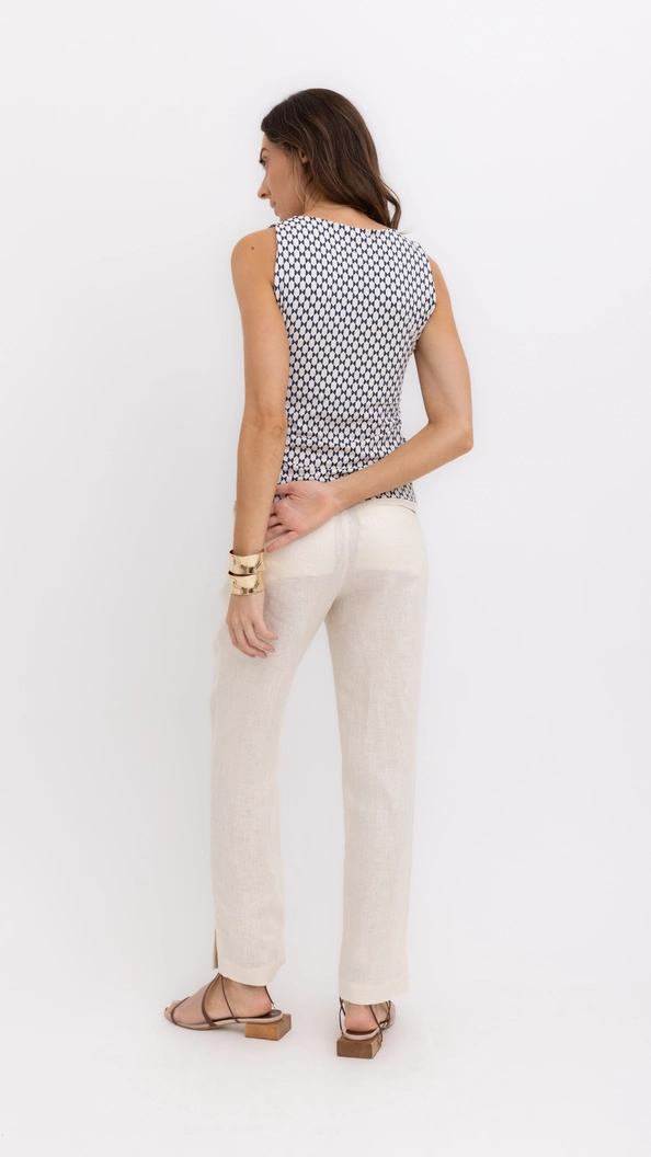 calça slim linho 100% borda barroca