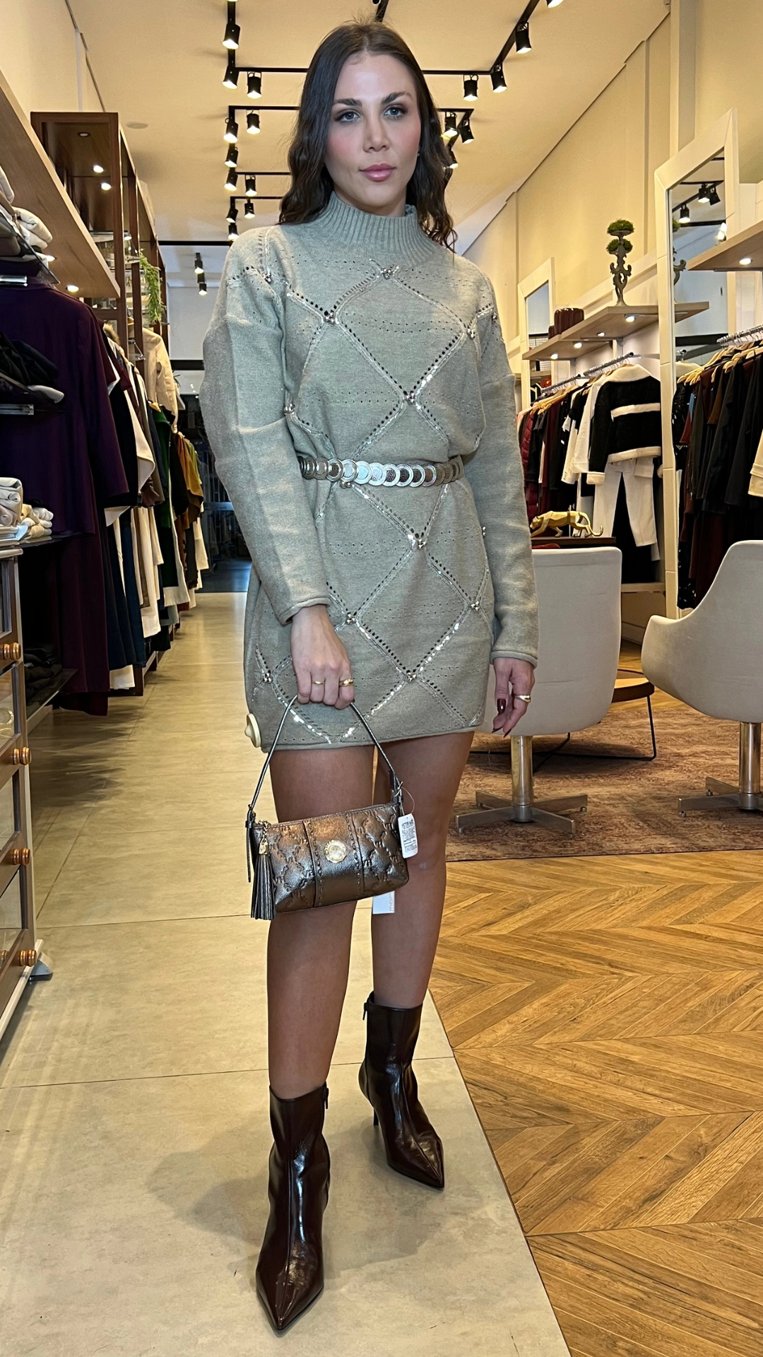 Transforme seu visual com o glamour do maxi tricot bordado paetê.