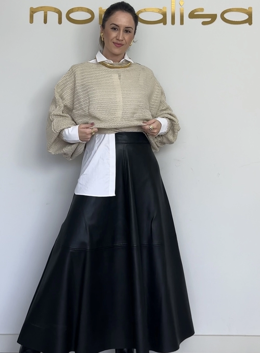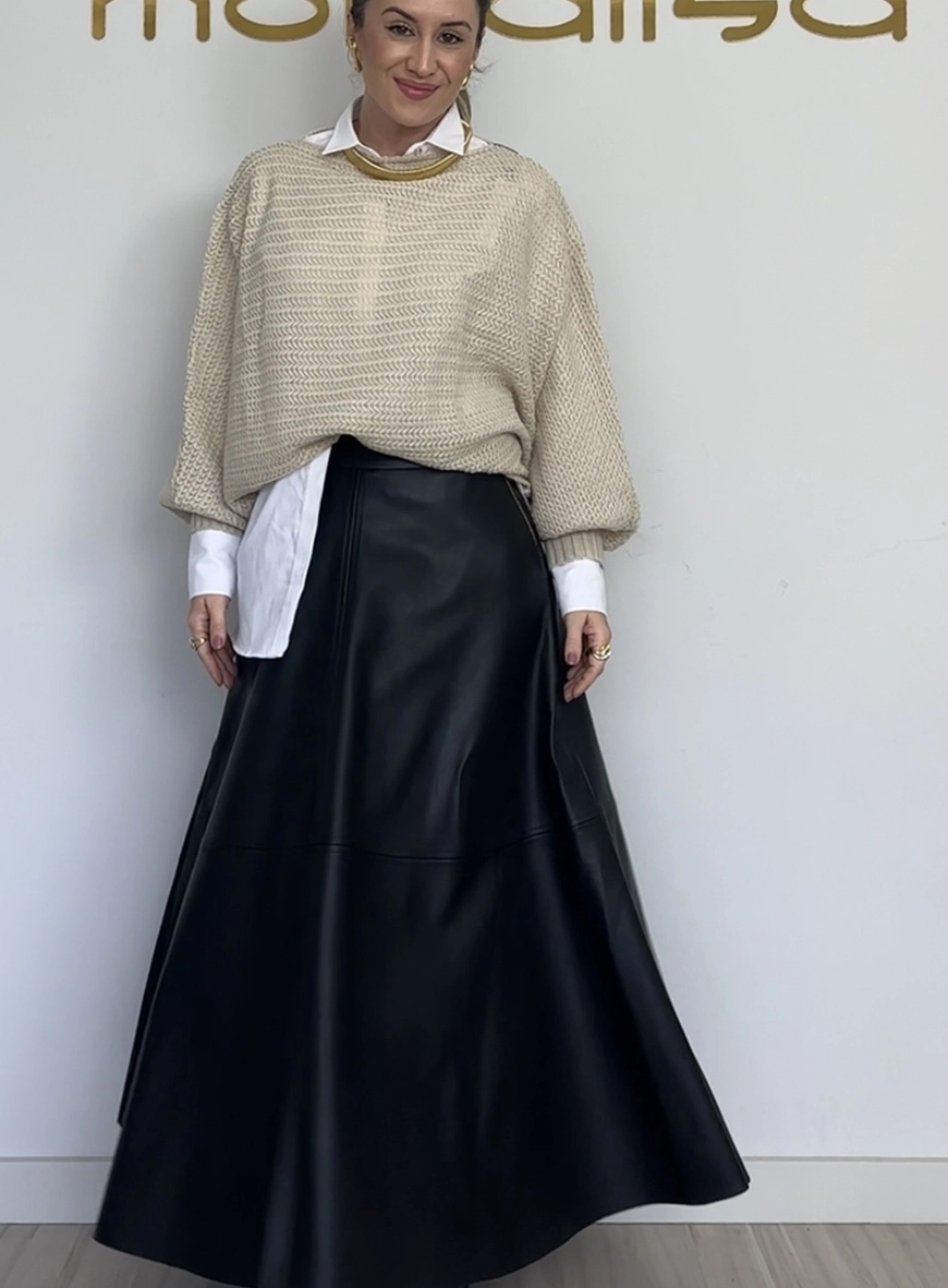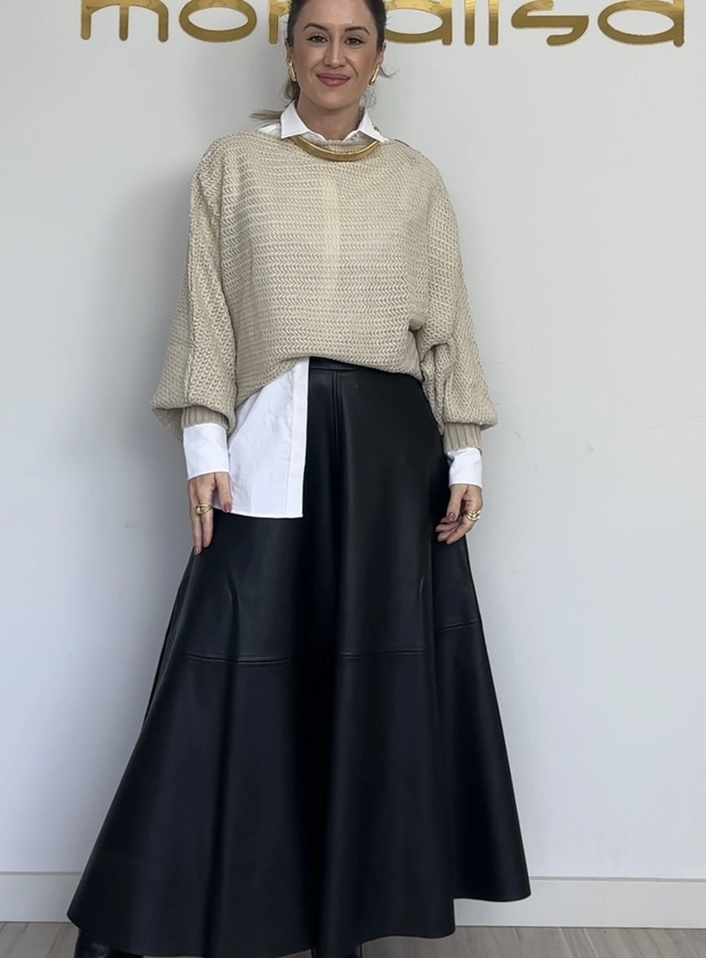 A saia em pu é aquela peça indispensável no guarda roupa, vai bem em diversas ocasiões e com diferentes combinações.