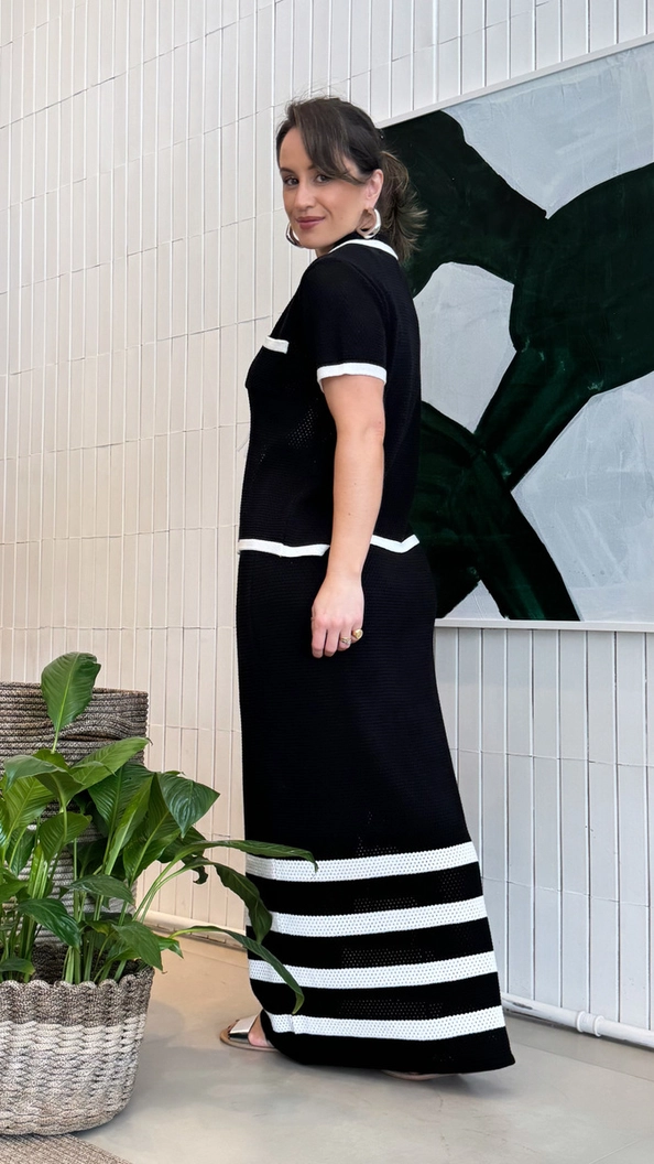 Saia longa em tricot, modelagem ajustada proporcionando caimento sofisticado e confortável.