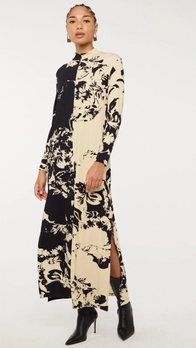 Vestido longo com modelagem reta e fluida, proporcionando caimento leve e sofisticado. Fendas laterais garantem movimento e modernidade ao look.