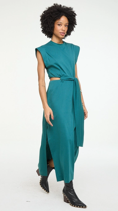 vestido midi animale vazado lateral