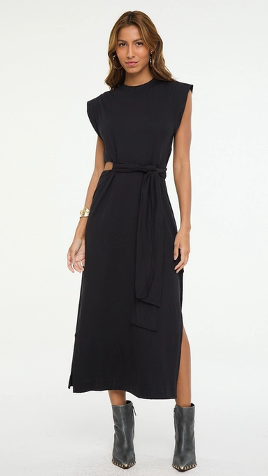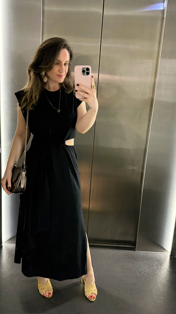 vestido midi animale vazado lateral