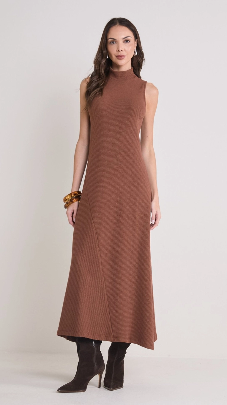 vestido midi evasê gola alta forum